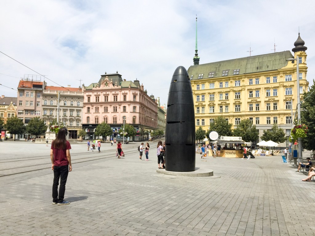 Özgürlük Meydanı’ndaki bu siyah obelisk heykel, Avrupa tarihinin en uzun savaşı olan 30 Yıl Savaşları’nda İsveç Ordusu’na karşı verilen direnişin bir sembolü olarak, mermi şeklinde Oldřich Rujbr ve Petr Kameník tarafından tasarlanmış. Yapımı 3 sene süren ve 12 milyon CZK harcanan saatin açılışı 2010 yılında yapılmış.
