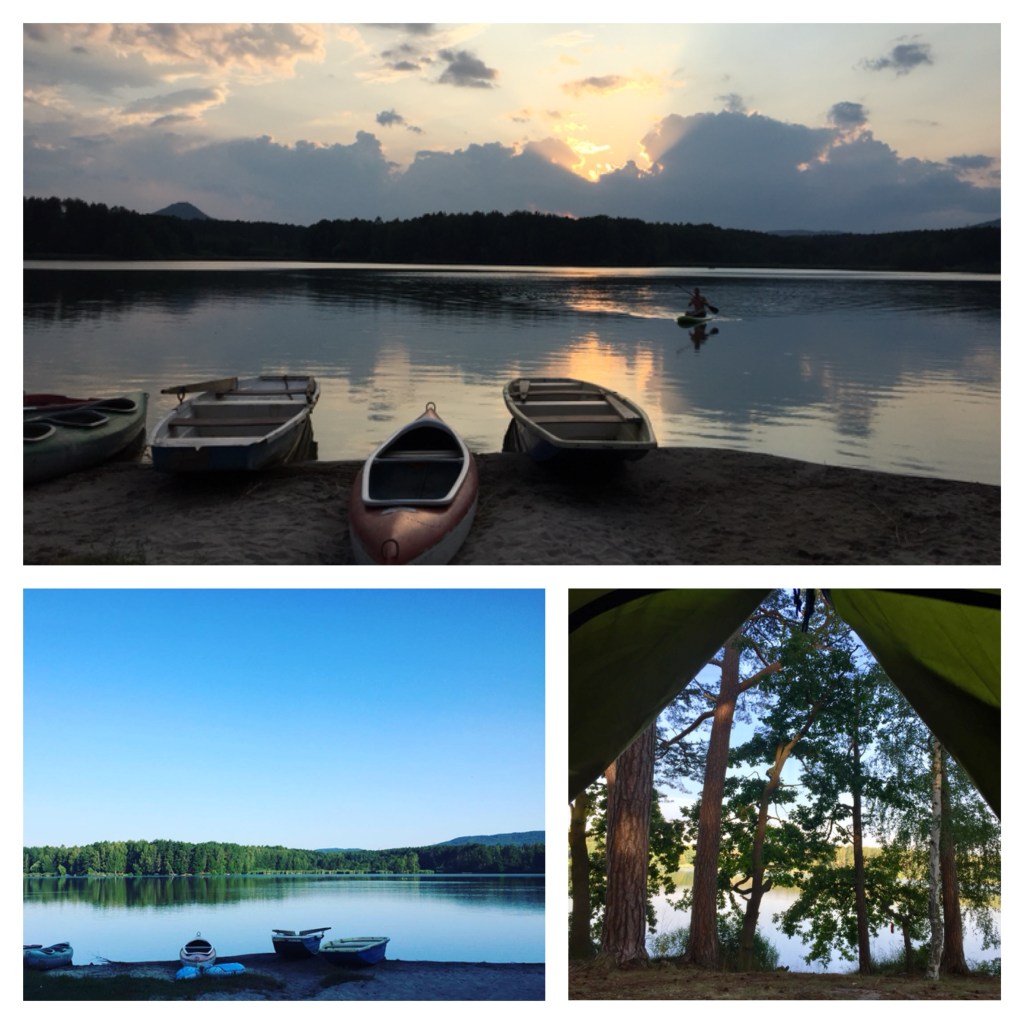 Kampta ortalık sakinken göle nazır harika bir yer bulduk ve çadırımızı kurduk. Sonrasında alışveriş için 15km mesafedeki Česká Lípa şehrine gittik. Döndüğümüzde gözlerimize inanamadık çünkü kamp alanı neredeyse dolmuştu. Demek ki kalabalık ülkede yaşamanın verdiği yer kapma duygusu burada da işe yarayabiliyor..