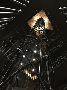 70 metre yükseklikteki kuleye iki ayrı asansörle çıkılıyor. Hatta ikinci asansör tasarımıyla ödüller almış. Kulenin inişinde trafik lambaları var 🙂 Yürüyerek inerseniz kulenin dört tarafındaki küçüklü büyüklü pencerelerden değişik kareler yakalayabilirsiniz.