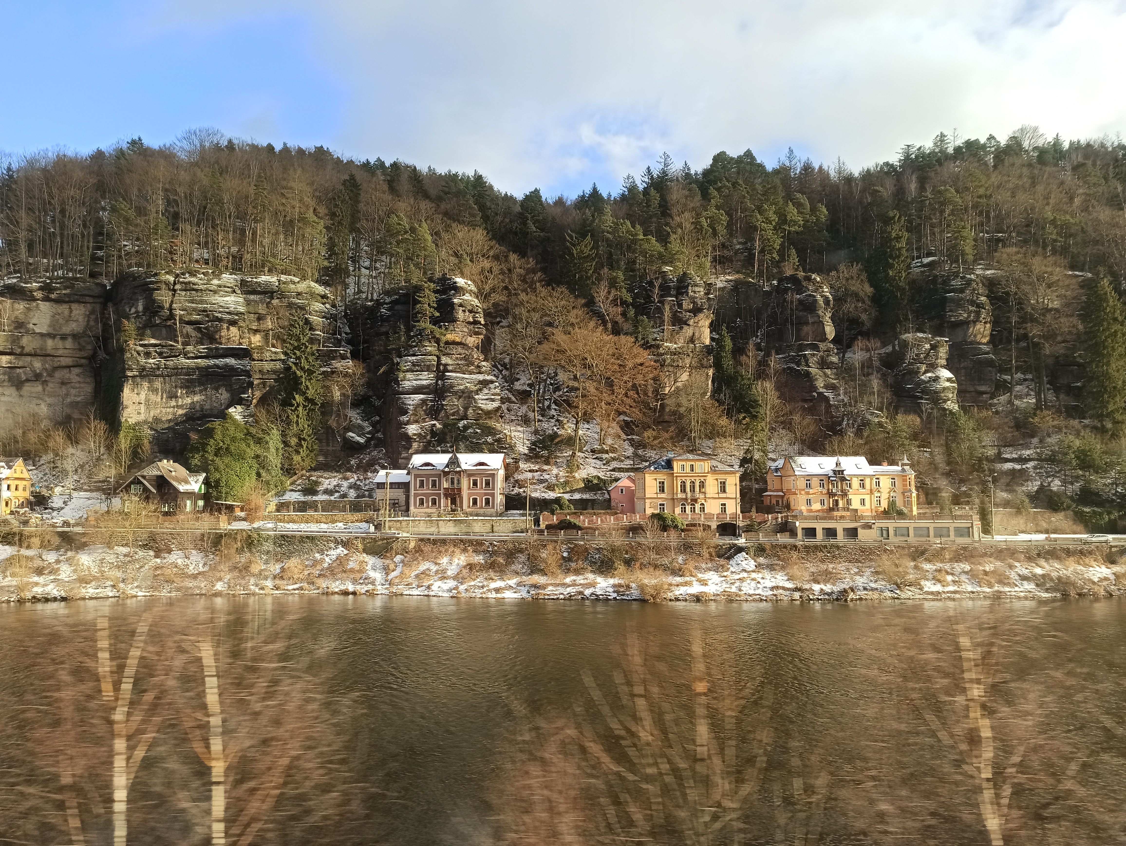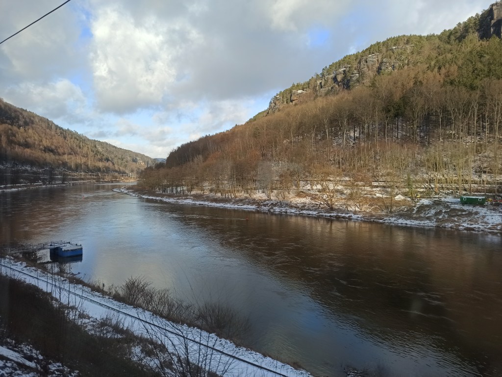 4.5 saatlik yolculuğun bir kısmı Çekya-Almanya sınırındaki bu harika manzarayla geçti. Burası Děčín ile Bad Schandau arasında yer alıyor. Bu istasyonlardan Çekya ve Almanya’nın iki büyük ulusal parkına gidiliyor. İki park arasında geçiş var mı henüz denemedim.