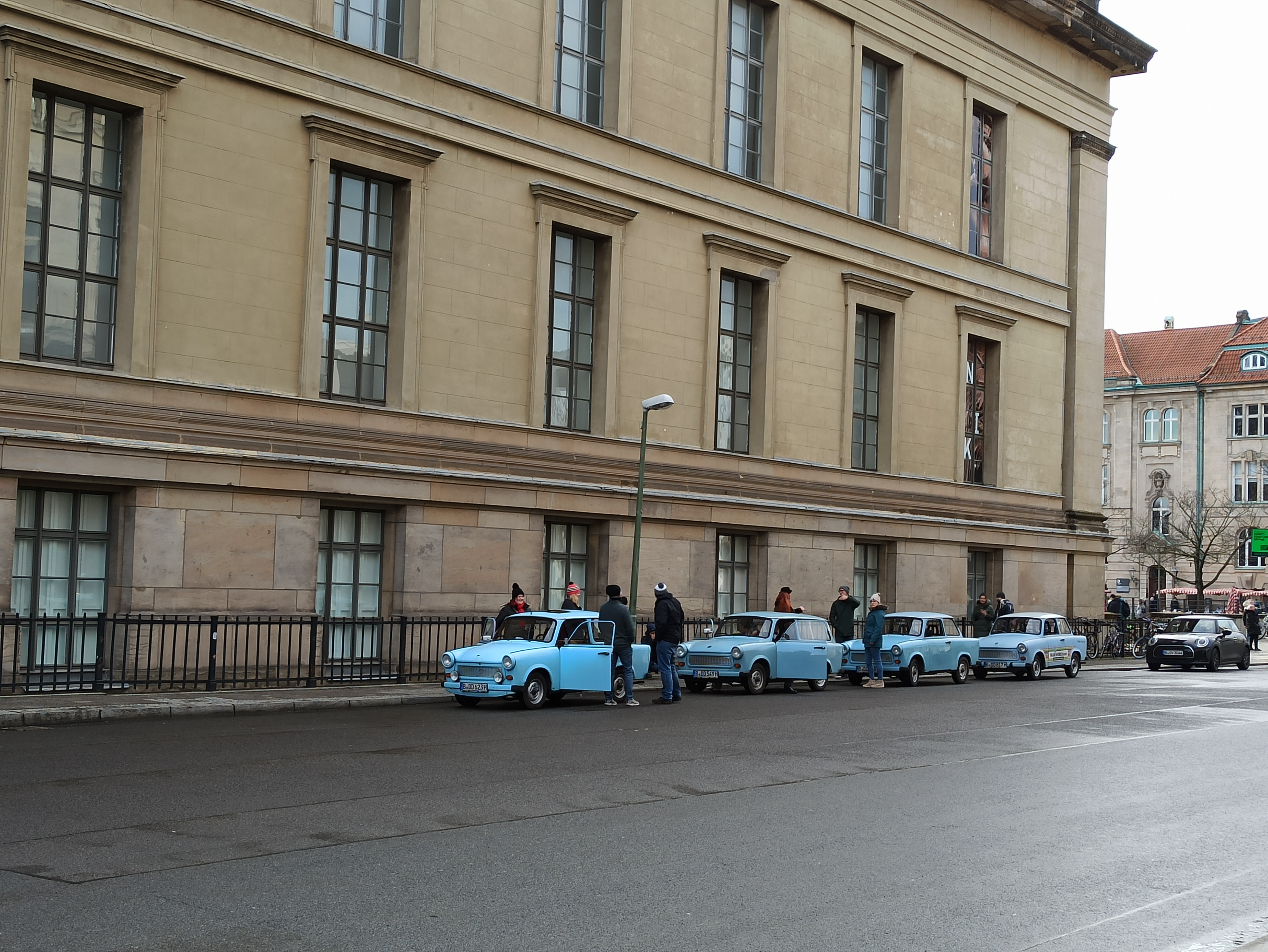 Müze adasında yürürken arka arkaya sıralanmış Trabanat’ları gördüm. Trabant arabaları Doğu Bloku’nun sembollerinden biri. Prag’taki Trabant Müzesini büyük bir merakla gezmiştim, görmek isterseniz link burada https://onedaywonder.blog/2019/05/05/prag-trabant-muzesi/