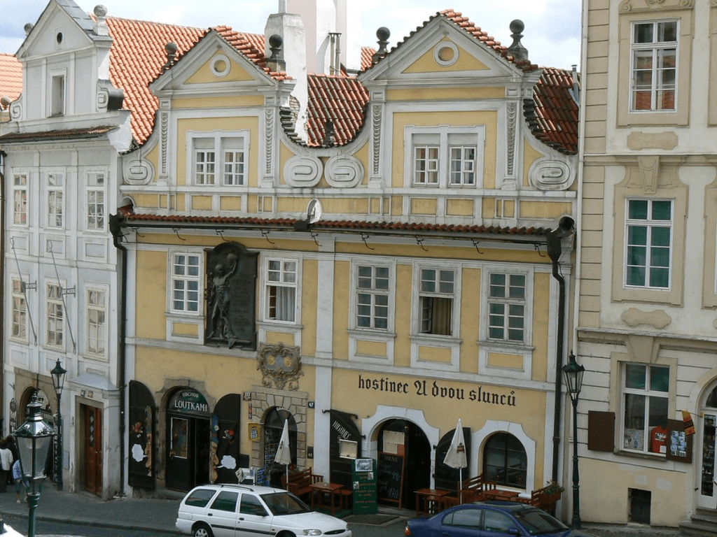U Dvou Slunců – At the Two Suns, Jan Neruda moved to this house at the age of four. Inside the house there is the information board and the pictures of the famous writer. His well known book is Tales of the little Quarter published in 1878. There’re stories about the life of Malá Strana habitants.