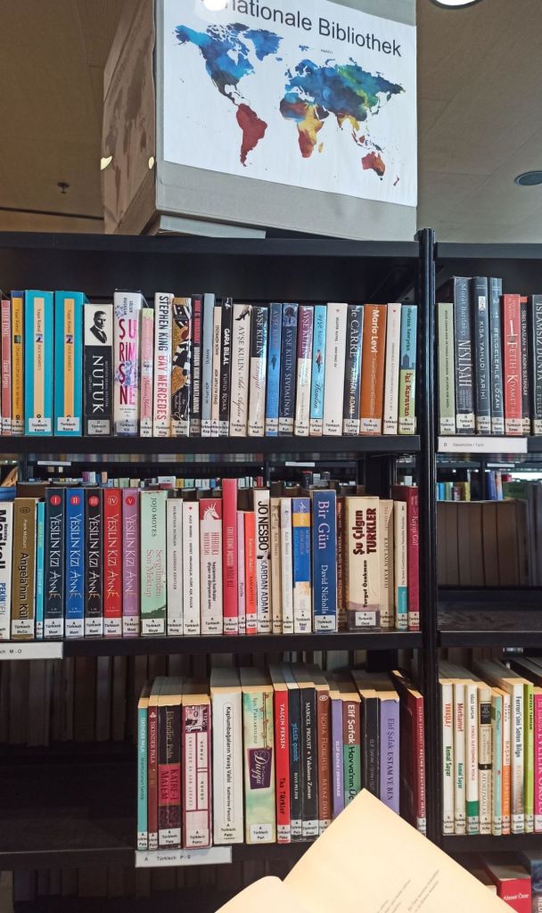 Almanca öğrenirken sertifika sınavına hazırlık kitaplarından faydalandığım kütüphanenin geniş seçkili Türkçe kitap bölümü bile var. Bu hafta kolay bir dille yazılmış Almanca kitaplar ödünç aldım. Detayları ilerleyen zamanlarda anlatırım.