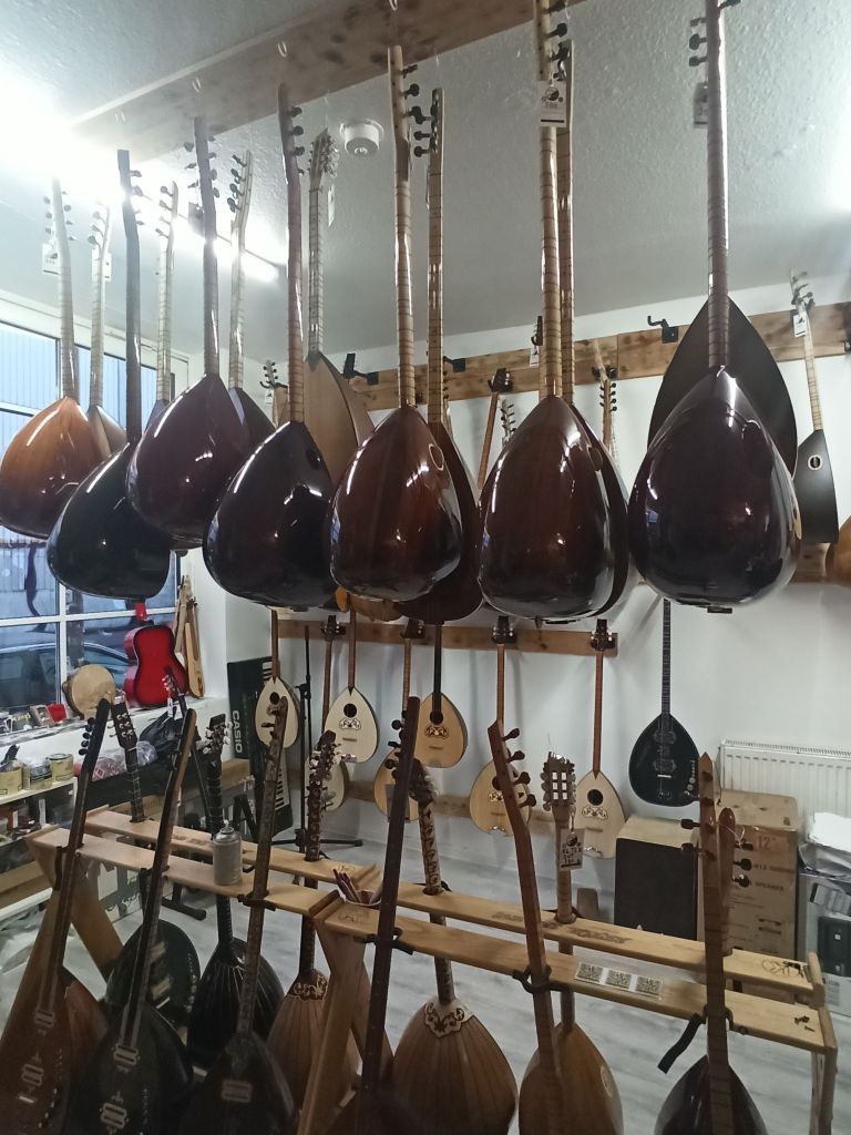 Akyüz Saz Evi’nde saydığım entsrümanların yanı sıra üflemeliler ve cümbüş, cura gibi diğer telli enstrümanlar satılıyor. Müzik aletleri İstanbul’dan geliyormuş. Dükkanın sahibi bize bağlamaları tek tek denetirken bir yandan da kendi göç hikayesinden bahsetti. Yaklaşık yarım saat çeşitli ağaçlardan yapılmış (dut, ardıç, maun gibi) bağlamaları denedik. Ağacın türü bağlamadan çıkan tınıları etkiliyor. Bu arada benim de gözüm udlara takıldı. Bir tanesini deneyeyim derken gitardan alışkanlıkla baktım ufak ufak tıngırdatabiliyorum, o anlık özgüvenle baktım pazarlık aşamasına geçmişim.